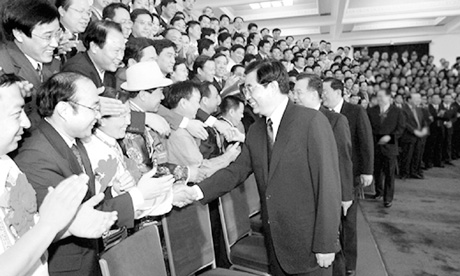 2005年5月23日,党和国家领导人胡锦涛、温家宝等在北京人民大会堂亲切会见出席全国社会治安综合治理先进集体、先进工作者表表彰大会的全体代表